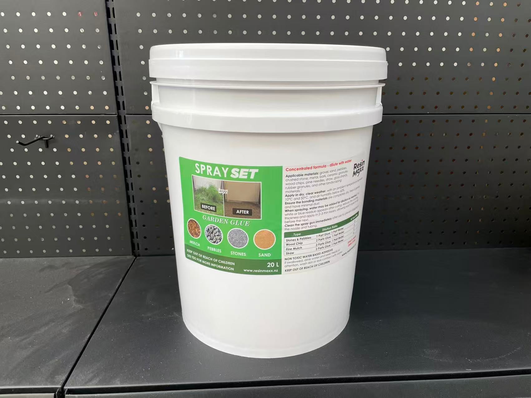 The SpraySet garden glue or mulch glue is a specially formulated water-based polymer resin designed for fixing ground surface shapes in garden and courtyard landscaping scenarios.
